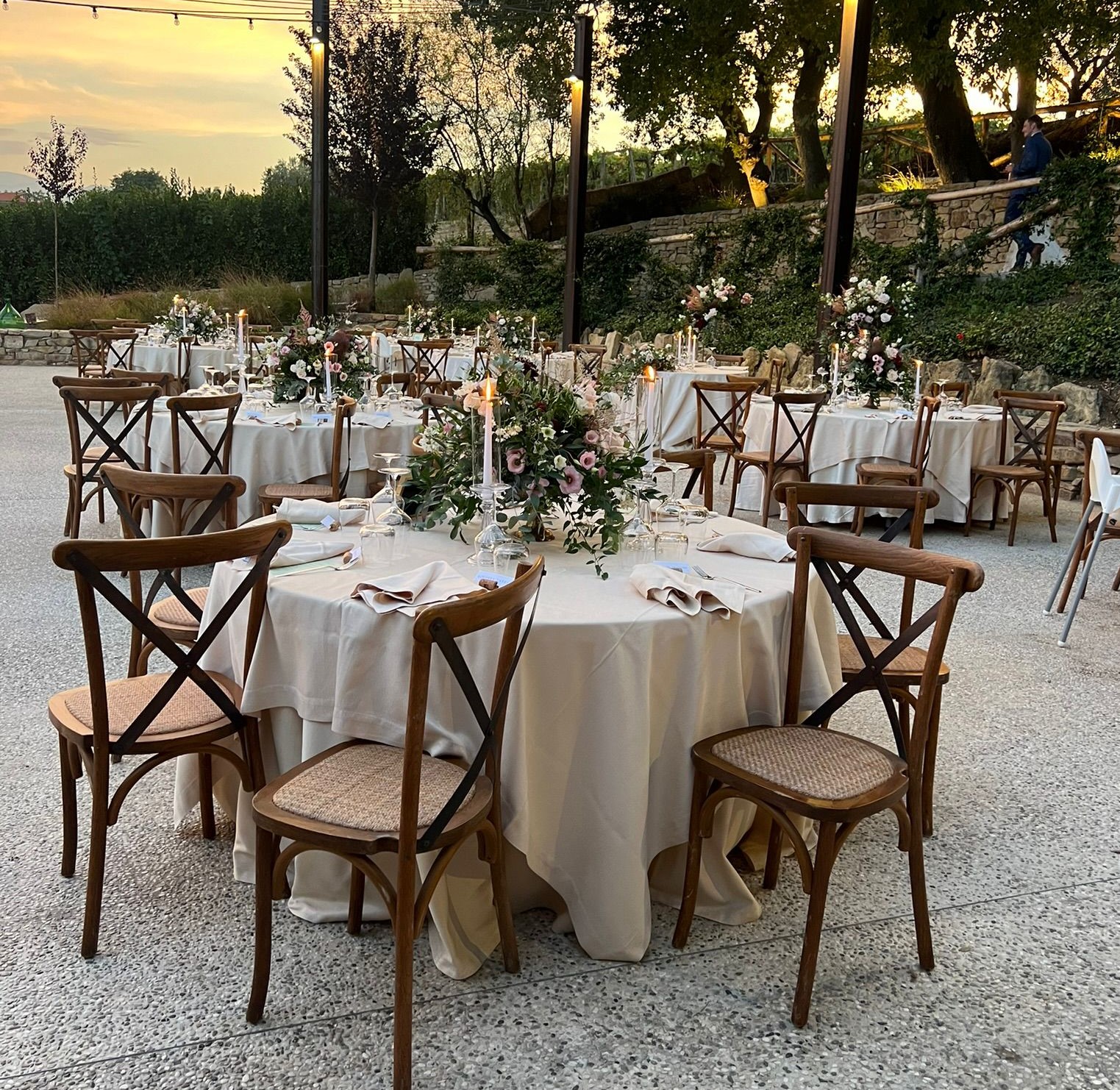 Per completare l’allestimento e renderlo davvero unico, offriamo anche coprisedie coordinati, in grado di trasformare anche gli ambienti più semplici in spazi eleganti e scenografici. L’aggiunta dei coprisedie non solo migliora l’estetica generale, ma conferisce un senso di ordine, cura e attenzione ai particolari che non passa inosservato.